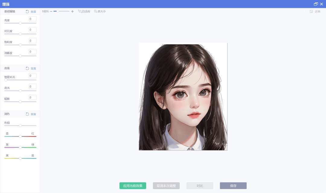 美化图片:美化图片可以调节图片的亮度、对比度、饱和度、清晰度,还能智能补光、高光、暗影,会调色的小伙伴还可以调节色相。