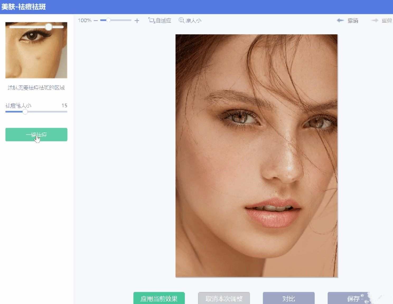 袪斑袪痘:如果脸部有斑有痘的小伙伴,可以通过这个功能“一键袪痘”,脸部的立刻变光滑了。肤色:皮肤较黑的脸部图片,可以通过美肤的功能,调节美白的力度,可一键的美化图片,让皮肤看起来细腻光滑。