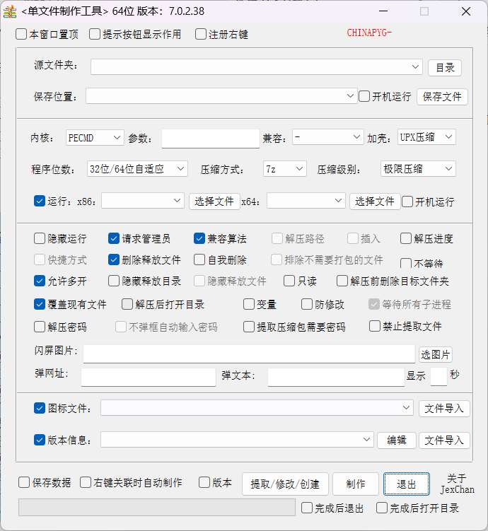 -取消了原版默认勾选隐藏释放文件夹-增加打包后程序自动退货并不提示完成