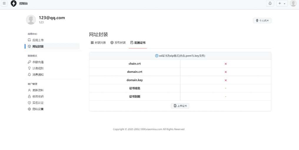 需要上传签名证书,安卓测试了一下不行!自行研究吧!