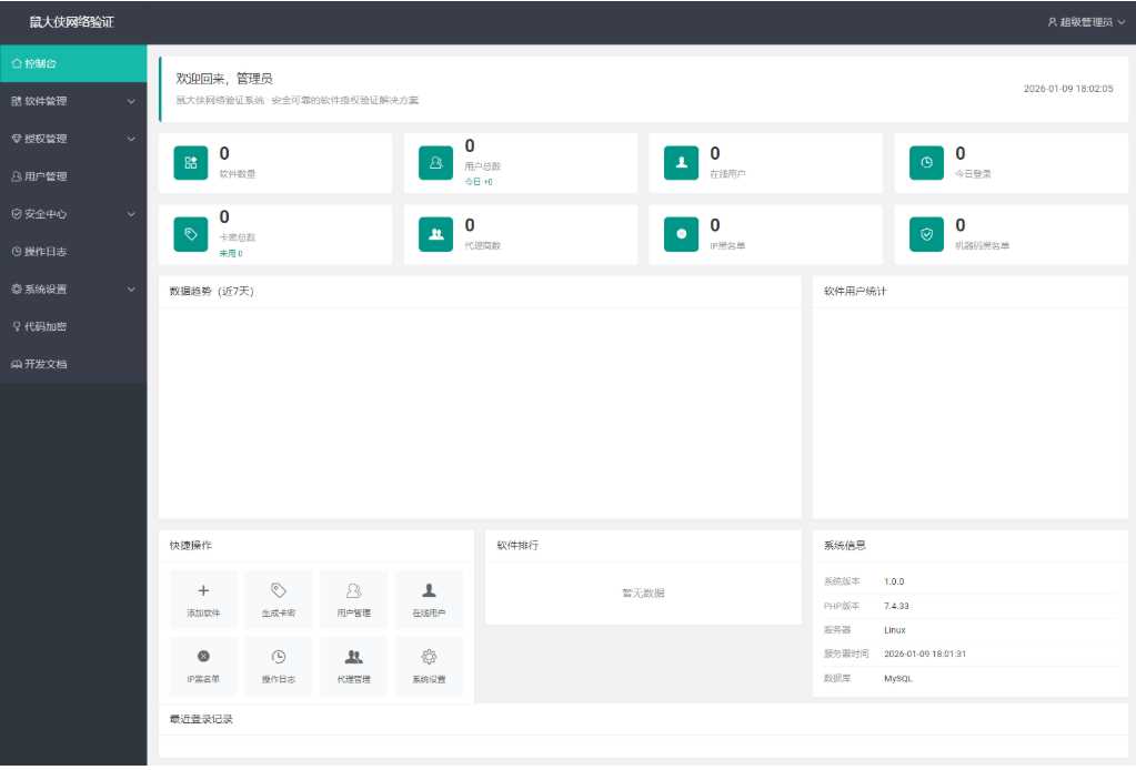 鼠大侠网络验证系统源码 一机一码授权验证 全开源