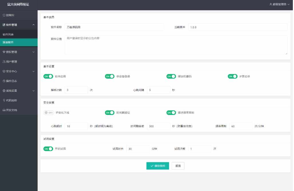 一款简单易用的软件授权验证系统,客户端对接简单,支持多种开发语言。