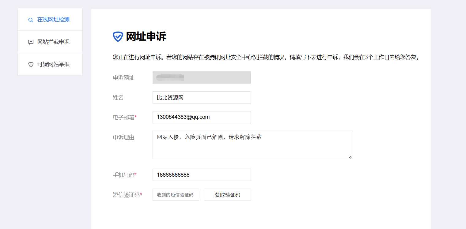 2.去普通申诉,备案号不用填,申诉内容就填:“网站被入侵,危险页面已删除,请求解除拦截”