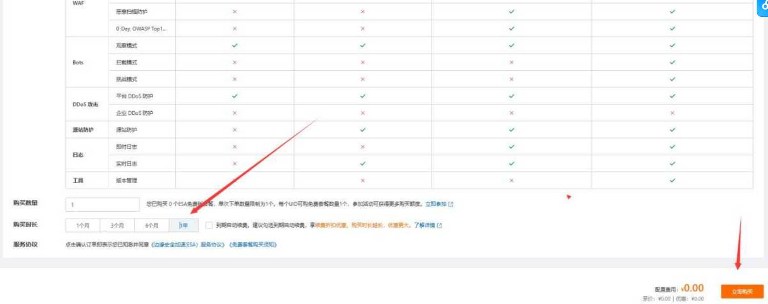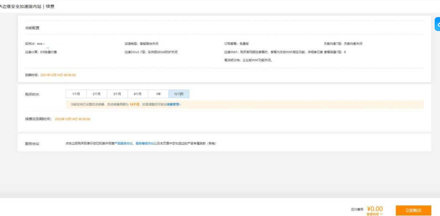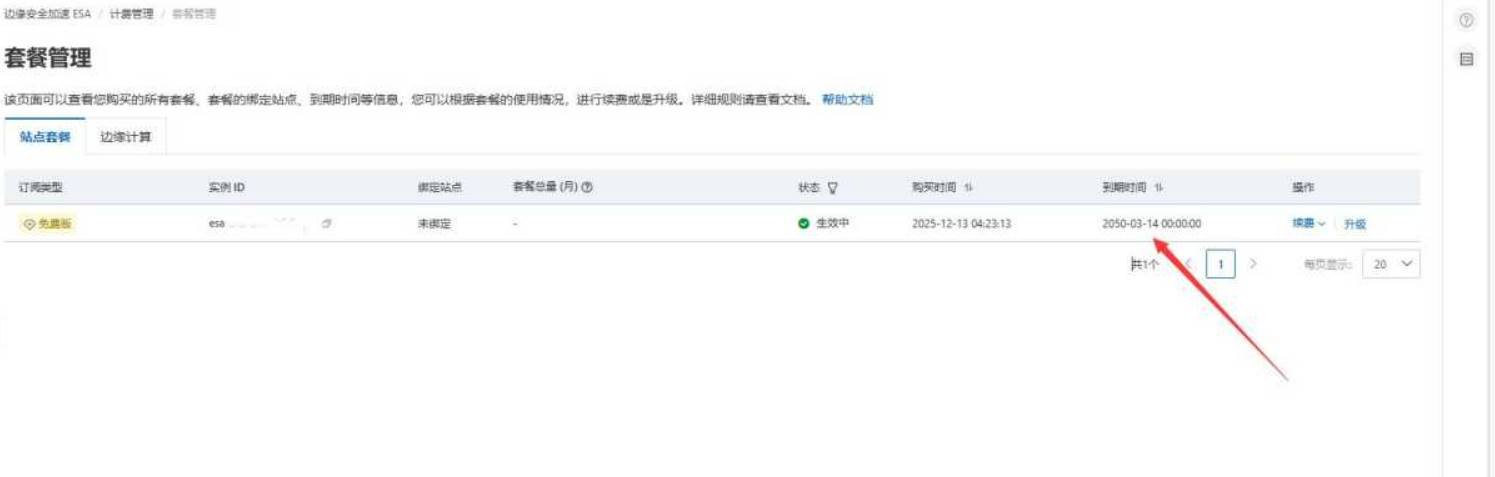 2、选择免费版勾选,然后 0 元下单购买(全程无付费项)解锁 2050 年长期使用权:购买成功后,点击【套餐管理】→ 找到【续费】按钮 → 选择【设置续费规则】系统会自动跳转续费页面,选择「续费 1 年」(依然 0 元!),反复操作 25 次,就能直接把有效期刷到 2050 年啦!