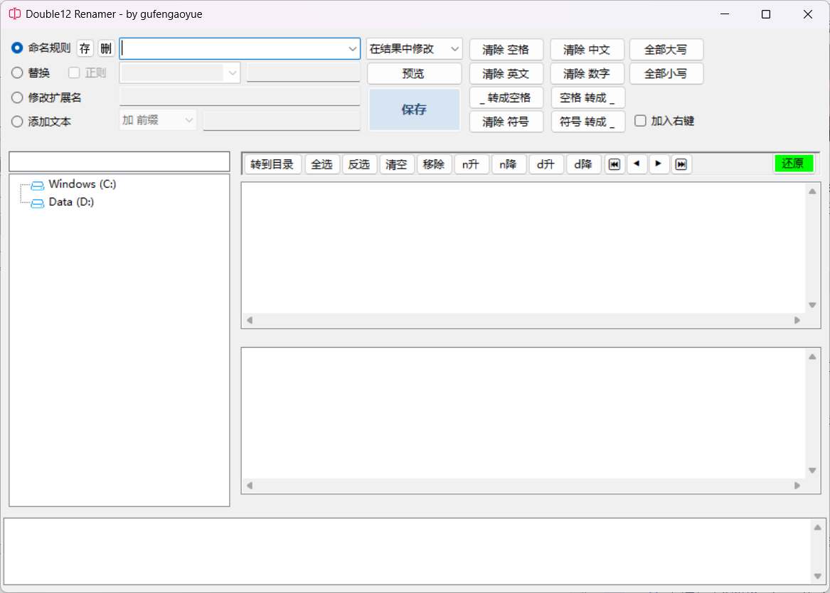 在数字时代,我们每天都在与大量文件打交道——照片、文档、音乐、视频……如何快速、批量、智能地管理这些文件名称?Double12 Renamer 正是为解决这一痛点而生的专业工具。Double12 Renamer一款国产免费批量文件重命名工具(作者:gufengaoyue),主打轻量易用 + 针对性字符处理,适合普通用户快速整理文件(如照片、文档、下载资源等)。