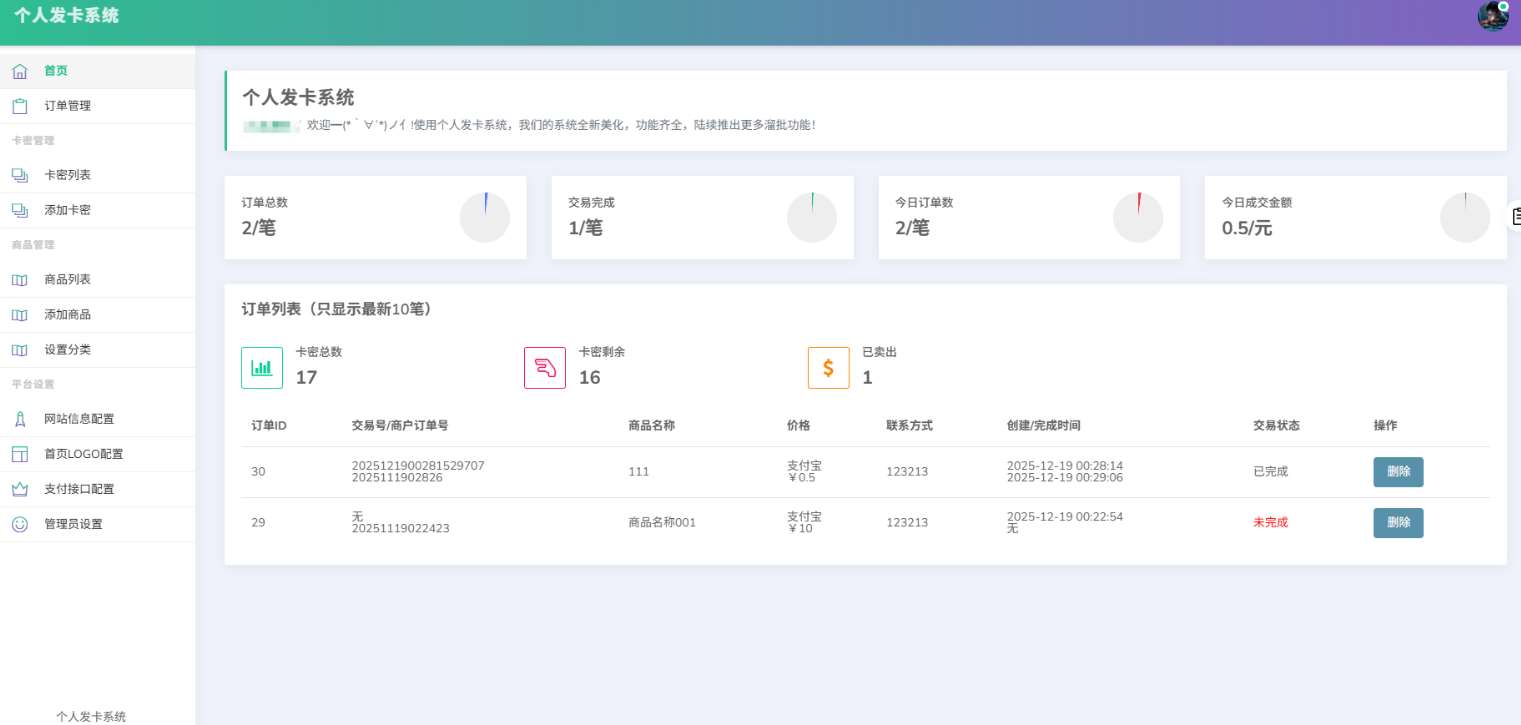 简约卡密发卡系统,源码无加密,功能完善