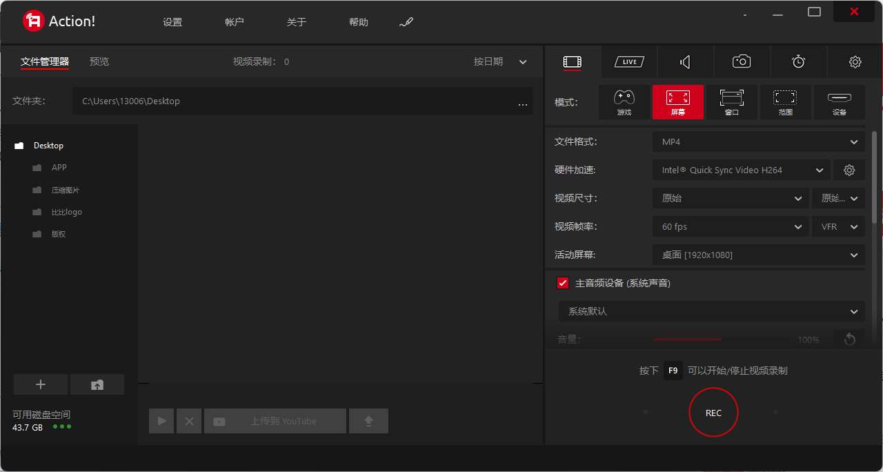 Mirillis Action!,暗神屏幕录制软件,屏幕录制软件和游戏录制软件,专业高清屏幕录像软件,被誉为游戏视频三大神器之一。拥有三大硬件加速技术,支持以超高的高清视频质量直播和实时录制桌面,视频超清画质,支持录制加密视频,4K/1080P视频HDR、录制60fps帧高清视频为MP4(H.264/AVC)格式、显示游戏帧率,添加实时评论,进行游戏视频解说。还可以录制和直播游戏、网页视频、录制音乐、屏幕截图等等。